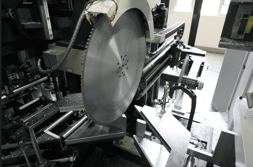 • 3-х осевая резка: Оснащен пильным полотном диаметром 600 мм, мощностью 7,5 кВт с 3-осевой резкой сверху вниз, угол поворота: 40°–140°.